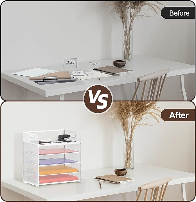 Supeasy 5 Trays Paper Organizer Letter Tray with Handle-Mesh Desk File Organizer, Paper Sorter Desk Organizer for Office, Home or School