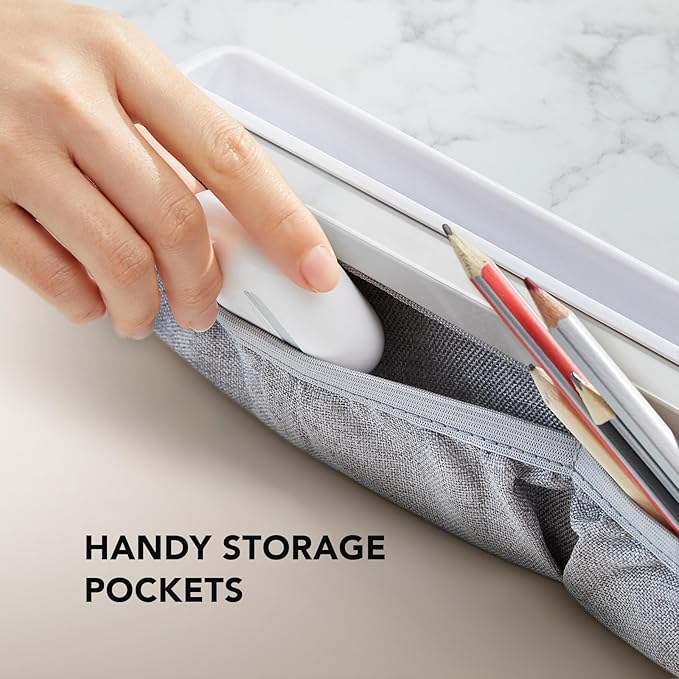 - LIGHTWEIGHT & PORTABLE: This lap desk with cushion is very lightweight and features a storage pocket that can also be used as a carrying handle.