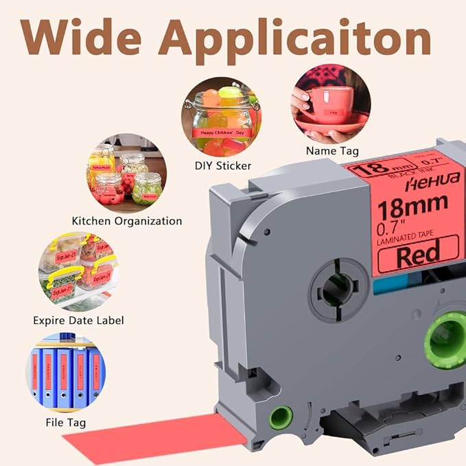 - Product features : Split back, water resistant, fading resistant, abrasion resistant, temperature resistant, strong adhesive. This compatibel label tape 18mm TZe-441 Black on Red is suitable for indoor and outdoor use