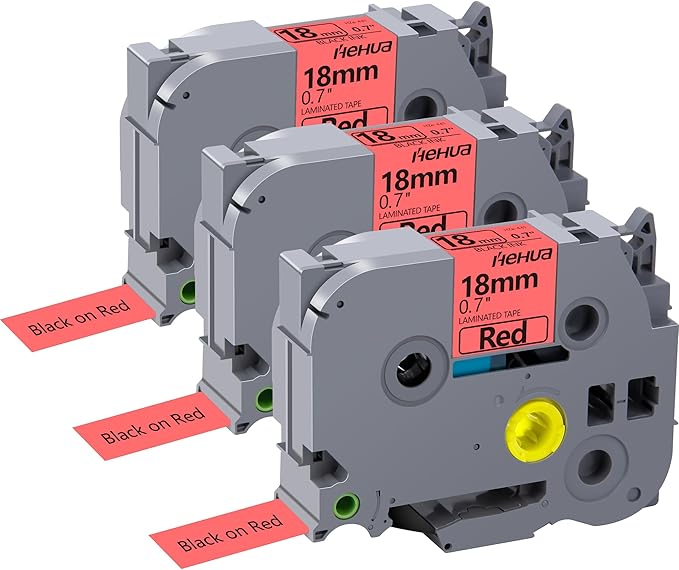 Hehua Tape Tze Tz 18mm 0.7 Laminated Red Compatible for Brother P-Touch TZe-441 TZe441 TZ-441 TZ441 Tape for Ptouch PT D400 D600 D610 P710bt, 3/4'' x 26.2ft Black on Red, 3 Pack