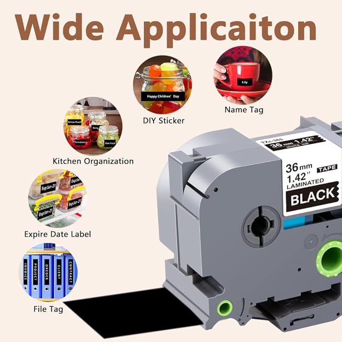 - Wide application: Compatible for Brother P-touch TZe 365 label tape is ideal to print clear, good-looking and durable labels. These labels are great for shelving, kitchen use, cabinets, file folders, USB sticks, food containers, storage boxes, personal possessions, children's school equipment with it's superior adhesive