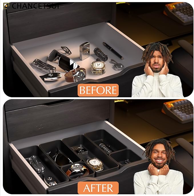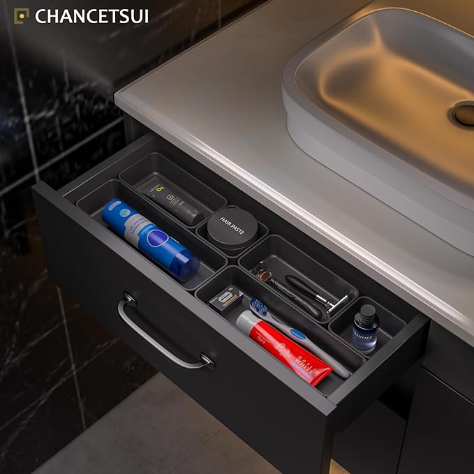 - [ MULTIFUNCTIONAL ] The Plastic Drawer Organizers for Home Organization and Storage multi size tray set offers a wild range of storage spacing to fulfil your every needs. Ideal for kitchen, offices, bathroom, bedroom and more!