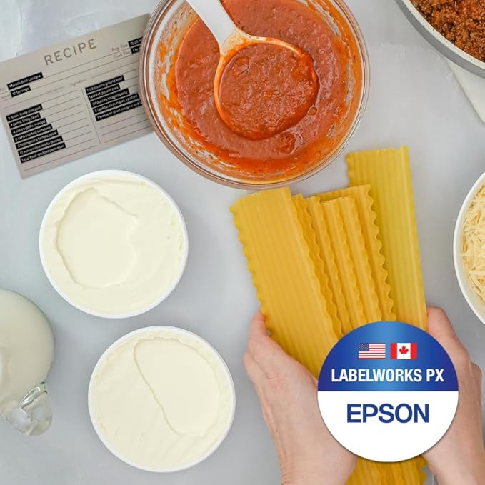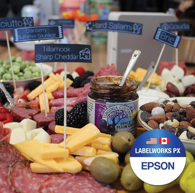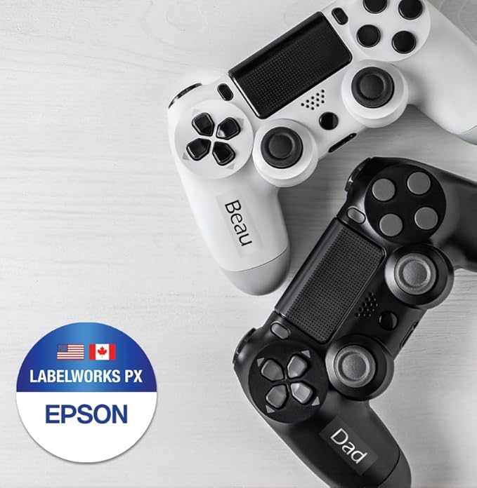 - DIMENSIONS AND COLOR - This Epson Labelworks Designer Collection tape is 1" (24mm) in width and 26 ft in length. The label maker tape is Black Matte and prints with White text. Works with Epson LABELWORKS PX printers and K-Sun printers, more listed below and in product description.