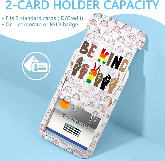 - Cute ID Badge Holder: Made from durable ABS material, this lightweight holder protects your cards from damage. External dimensions: 2.7 x 4.3 inches; internal: 2.2 x 3.4 inches. Holds up to 2 standard cards (ID, credit, access) or 1 thicker card like an RFID badge