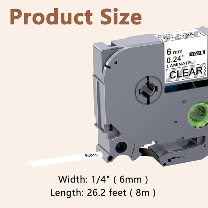 - 6mm tze clear label tape tze-111 compatible for Brother label maker PT-D200 PT-D210 PT-D220 PT-D400 PT-D600 PT-D610 PT-E110 PT-H100 PT-H110 PT-P700 PT-1180 PT-1280 PT-1830 PT-1880 PT-2430PC and so on