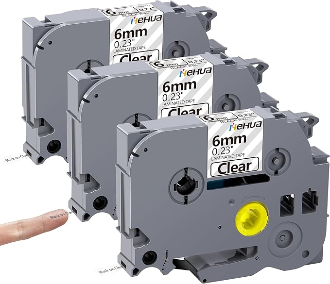 Hehua Tze Tz 6mm 0.23 Laminated Clear Tape Compatible for Brother Label Maker Tape TZe-111 TZe111 TZ-111 TZ111 for Ptouch PT D200 D210 H110 1880, 1/4'' x 26.2ft Black on Clear, 3 Pack