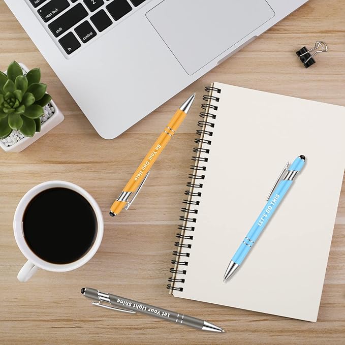 - Inspirational Quotes: Motivational pens feature printed quotes on the front like 'Believe In Yourself', 'Nothing is impossible', 'GO FOR IT', and more to inspire and uplift you.