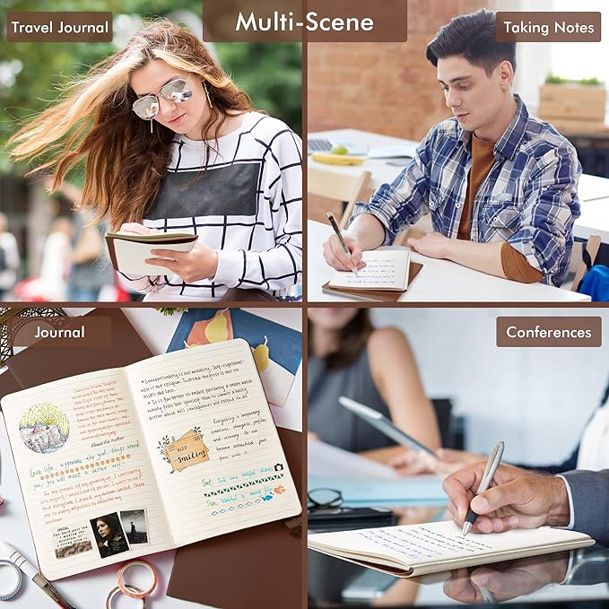 - These travel journals bulk for women have 84 blank lined pages (42 sheets), which would be sufficient for daily usage. The note taking notebooks have a smooth cover, round corners and tight stitching, which are designed to lay 180° flat. Some quick notes can help you remember important dates and find the page you want in a very short time.