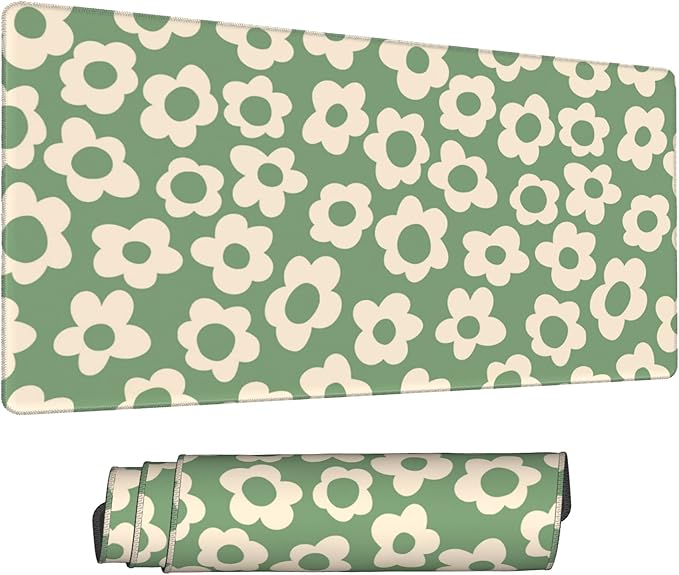 Desk Mat,Vintage Groovy Flowers Extended Gaming Mouse Pad for Office Work & Game,Computer Keyboard Mouse Mat Desk Non-Slip Rubber Base Large Mousepad with Stitched Edges, 31.5x15.7inch