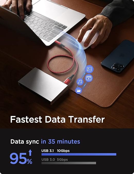 - 【TRANSFER 10G FILES IN 20S】:No more time spent waiting, this USB 3.1 C to Micro B Cable supports up to 10Gbps data transfer, it only takes 20 seconds to transfer a 10GB file. Our USB Type-c to Micro-B Cable will offer faster data transfers and backups for you.