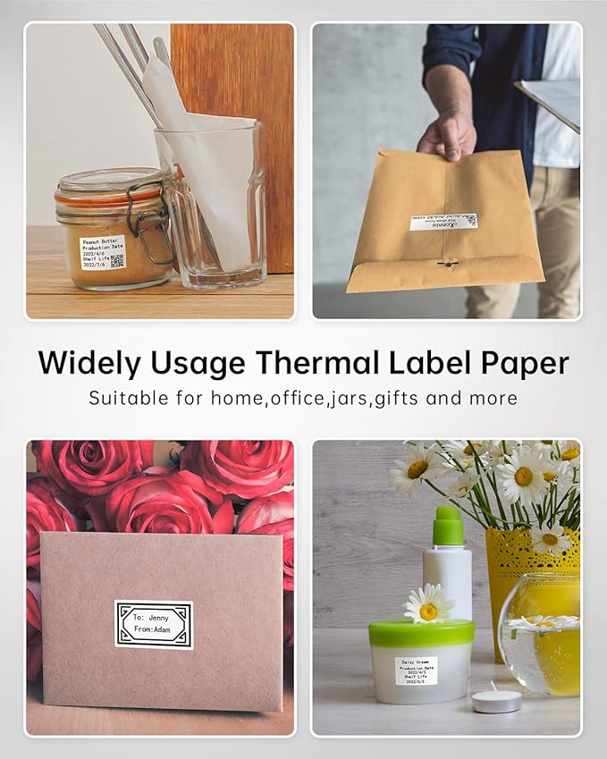 - Wide Application - The thermal labels can be used for variety purpose,including jars labels, size labels,thank you sticker, gift labels, name labels, address labels, reminder tags, classification labels,barcode,QR code printer labels and more labeling, ideal for home storage, office work, school etc