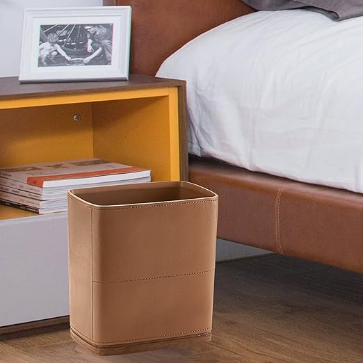 Polytree Bathroom Trash Can 1.8 Gallon(7 Liter) Small Kitchen Garbage Can,Decor Wastebasket for Bedroom Office,Resin Hand-Carved Leather Brown