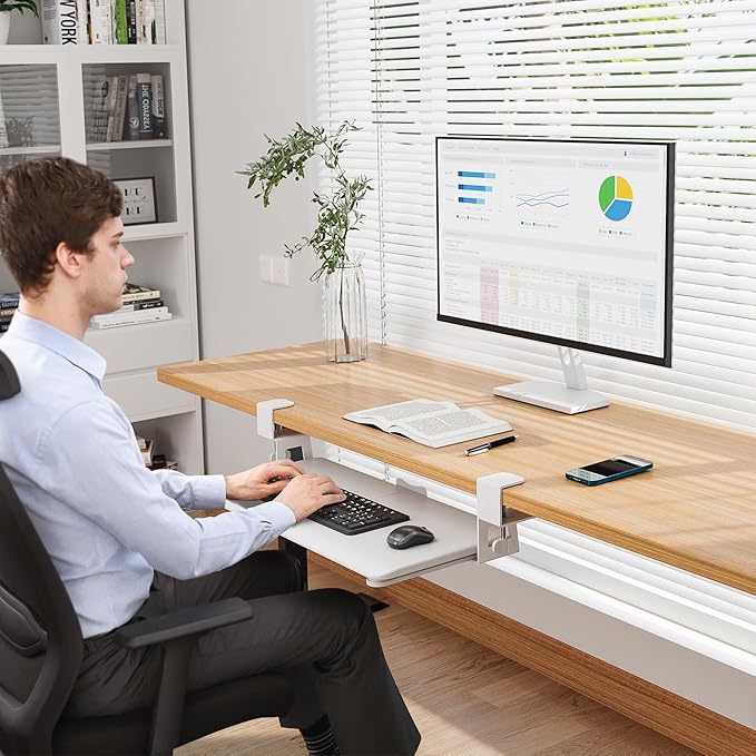 - ✅ MAXIMIZE YOUR DESK SPACE – Free up your desktop by placing your keyboard and mouse on this smooth slide-out tray. The ergonomic position helps reduce wrist strain while keeping your workspace tidy—perfect for offices, remote workstations, and gaming setups