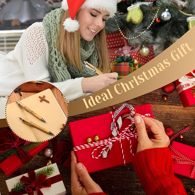 50 Pack Bible Verse Bamboo Retractable Ballpoint Pens Christian Inspirational Bible Verse Ballpoint with Black Ink Pen for Journal Writing Office Supplies Religious Gifts for Men Women(Classic Color)
