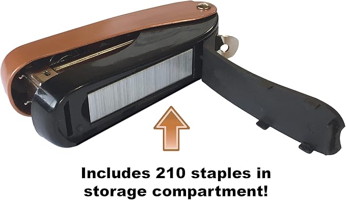 - ADDED CONVENIENCES: Features a built-in staple remover and opens flat for 'tacking' needs; The staple storage compartment holds 210 extra staples, ensuring you're always prepared