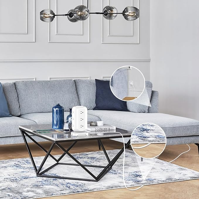 - Space-saving unique tower design: AOFO charging station adopts a unique vertical design, and the top adopts a delicate CD pattern design, so that your power strip are not monotonous, and you do not need to worry about the large plugs blocking each other, which helps you save space and is beautiful . Choose this office supply to keep your desktop clean and beautiful.