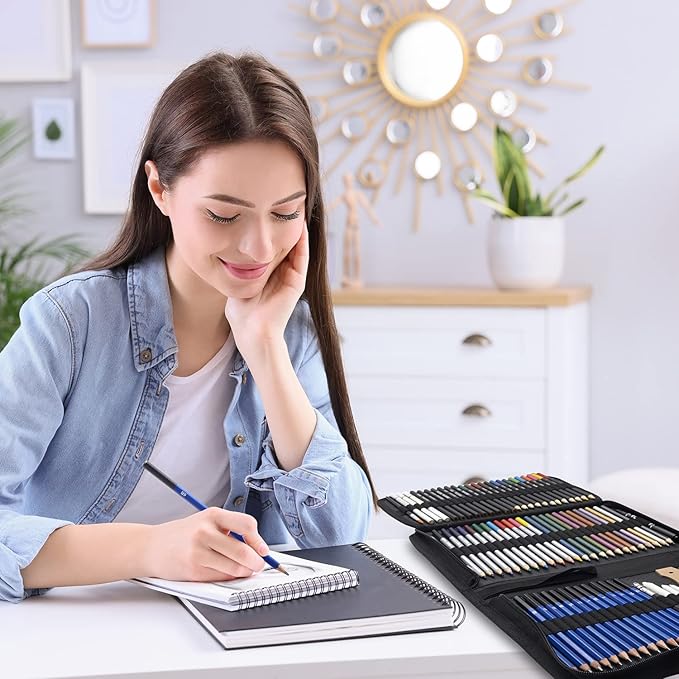 - PORTABLE SIZE: Non-toxic components nylon carrying case which is portable for you to do sketching anywhere and anytime. the drawing stuff come with a portable travel case, all the art tools and accessories are organized and protected very well in the travel case.