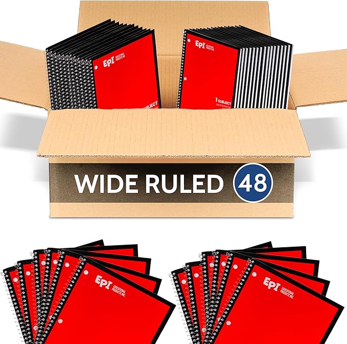 EPI Spiral Notebook | Wide - 70 Sheets, Durable Spiral Binding | 10.5 x 8 in | Classroom Supplies | School, Office, Note Taking, Journaling - 48 Pack