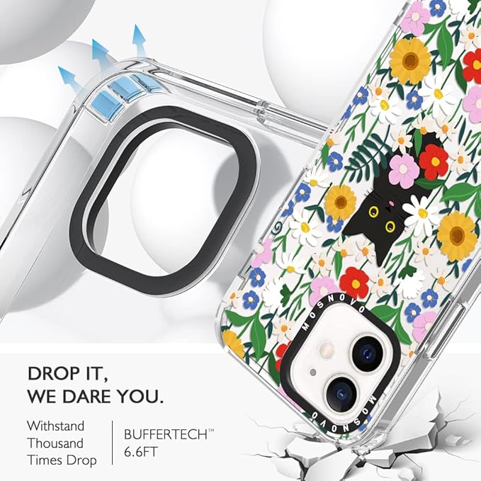 MOSNOVO Case for iPhone 12 & iPhone 12 Pro, [Buffertech 6.6ft Military-Grade Drop Protection] [Anti Peel Off Tech] Clear TPU Bumper Phone Case Cover Design - Black Cat in Garden