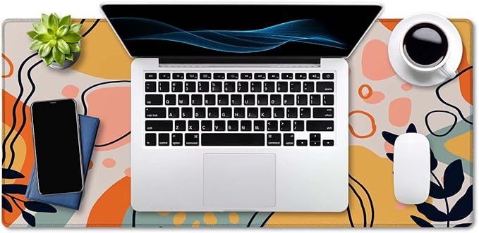 SSOIU Colorful Floral Boho Desk Mat, Abstract Mouse Pad, Extended, Extra Large, Non-Slip Water-Resistant Rubber Base, 35.5 x 15.7-inch