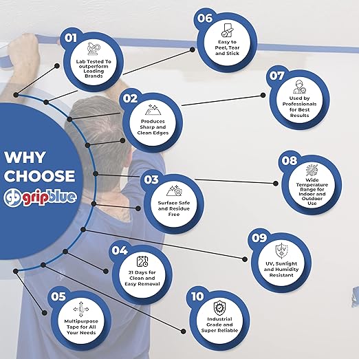 - SHARP LINES, NO BLEED: Whether you’re painting walls or wider trims, GripBlue helps you get clean, straight paint lines every time. No smudges, no fuss – just pro-looking results.