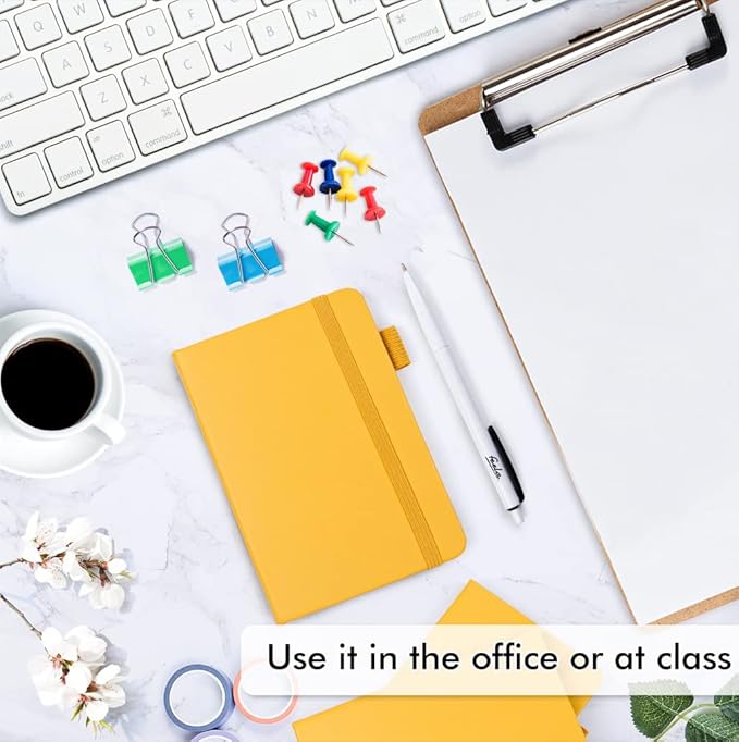 feela 6 Pack Pocket Mini Notebooks Bulk, Small Cute Memo Notepads Hardcover College Ruled Lined Journals with Pen Holder for School Business Work, with 6 Black Pens, 3.5”x 5.5”, A6, Yellow