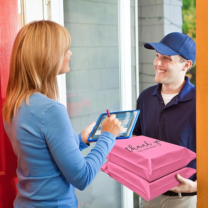 JinRuiKJ Thank You Poly Mailer 19x24 Inch 50 PCS, Shipping Bags for Clothing, Packaging Bags for Small Business, Strong Adhensive, Waterproof and Tear-Resistant Mailing Envelopes, Pink