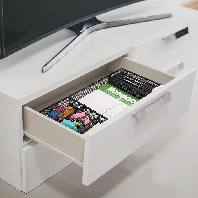 Desk Drawer Organizer Tray with Adjustable Compartments, 6 Grid Metal Mesh Drawer, Multi-use Desk Organizer Storage Box Set for Office,Home,School Supplies, 12.6X9X1.9 inch