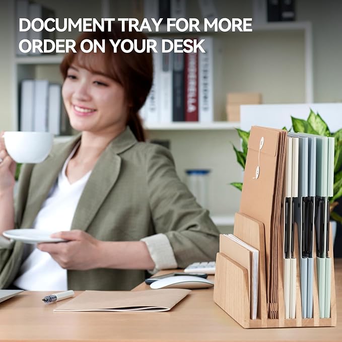 - [FUNCTIONAL & 5 SLOTS]: The desktop paper organizer easily holds all standard size mail, file folders, papers, books, documents for home and office.