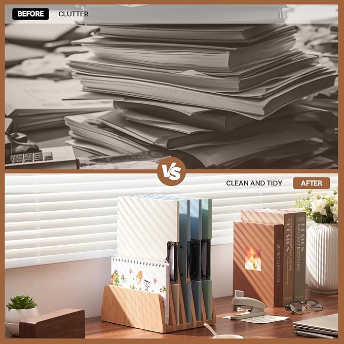- [SAVING SPACE]: This desktop file holder organizer with 5 slots can organize almost everything, such as paper, books, magazines, file, document mail or other objects. Saving space and keep your desk tidy and clean.