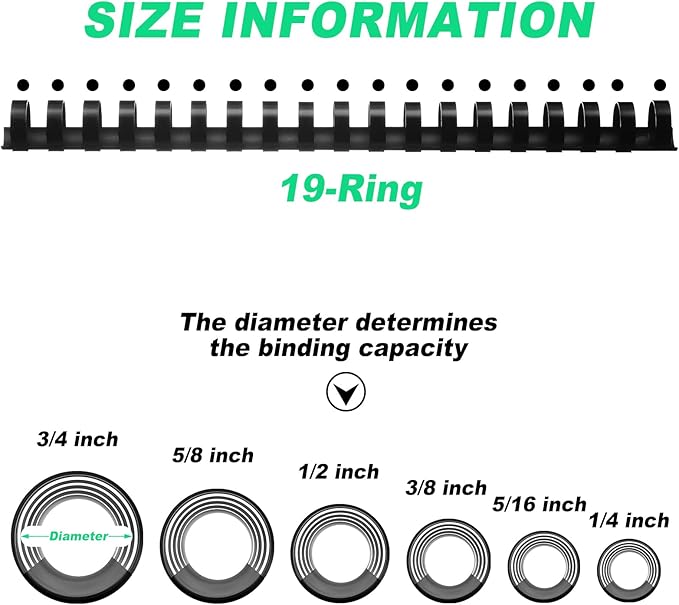 Yunsailing 150 Pack Plastic Binding Combs Plastic Binder Comb Ring 19 Ring Binding Spines Letter Size Spiral coils for Notebook Calendar(1/4 5/16 3/8 1/2 5/8 3/4 in,Black)