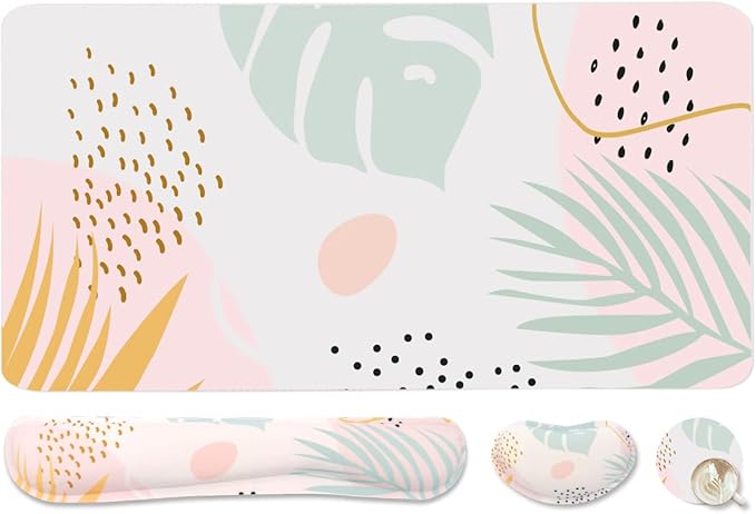 - 【Large and Extended Size】: large desk pad:35.4×15.75 inch, keyboard wrist rest measures 17.32" x 3.15" x 0.98" , Mouse wrist rest measures 5.4" x 3.15" x 0.98". Extended desk pad which is large enough to fit a full-sized keyboard and mouse, providing plenty of space for gaming or office work, and keeping a clean, uncluttered desk.