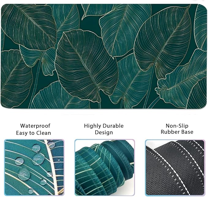 Ergonomic Large Mouse Pad and Keyboard Wrist Rest, Desk Pad for Keyboard and Mouse, 4-in-1 Large Gaming Mouse Pad with Wrist Support for Home Office Study Game-Green Leaves