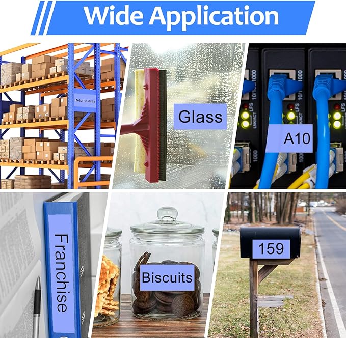 - Color: black text on blue background, Length: 8m(26.2 feet), Width:12mm (1/2 inch or 0.47''), easy to peel and no residue left after removed.