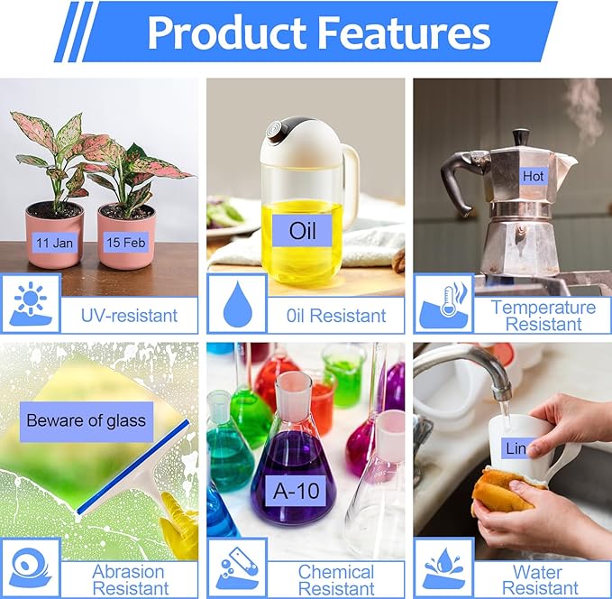 - These laminated 12mm label tapes are water resistant/waterproof, grime resistant, grease resistant, temperature resistant, abrasion resistant, chemical resistant as well as fading resistant.