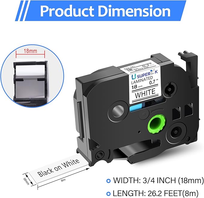 - USUPERINK compatible for brother p-touch label tape TZe-241 TZe241 TZ-241 TZ241 AZe-241 18mm 0.7 inch 3/4'' standard laminated label maker tapes.