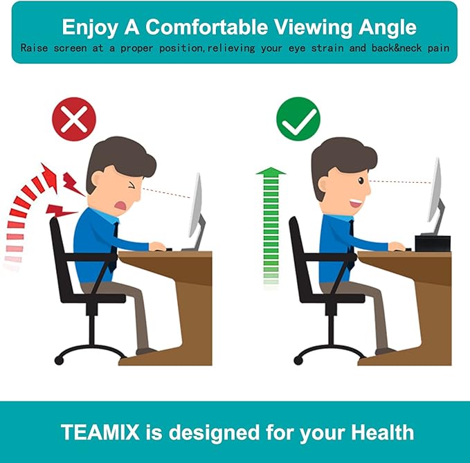 - 【Better Support】Stand can hold 80Ibs, there is a thick steel pipe stabilizing support structure on the back avoid shaking. TEAMIX monitor riser made of high quality MDF wood board, strong and sturdy.