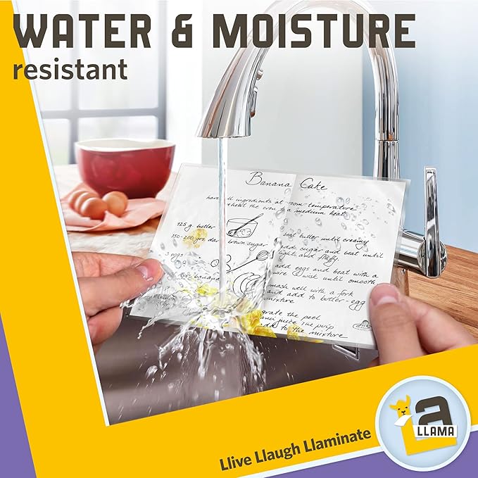 - 🦙Benefits of Laminate Sheets: premium quality laminating pouches extend the longevity of your essential laminate papers, add strength and durability to frequently used documents, certificates, cards, photos, study aids, bookmarks, and membership cards while protecting them from water/moisture, UV light, and creasing