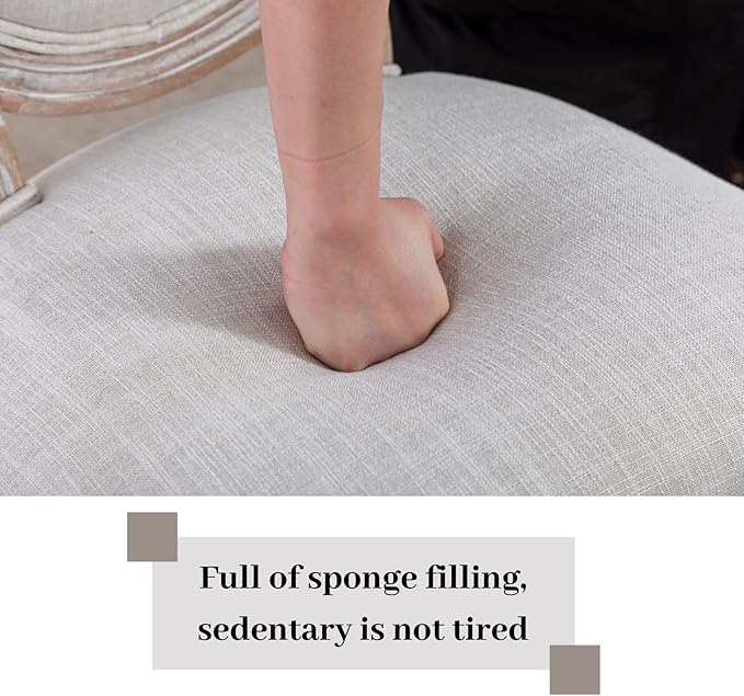 LukeAlon Vintage Linen Office Chair, Adjustable Height Swivel Task Chair with Wood Frame Armless Desk Chair with Wheels Upholstered Round Back Vanity Chair for Home Office Study Room, Beige