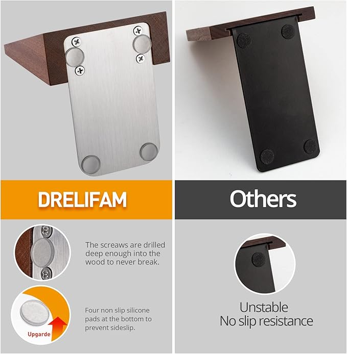 - PREMIUM MATERIAL: The heavy book stoppers are made of Sapele wood, so each one has a unique natural wood grain. Modern bookends, it is suitable for office,kitchen,kids room,school and all occasion. The metal plate and screw parts are made of stainless steel, which is very suitable for long-term use in the bookshelf.