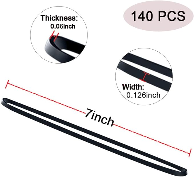 Black Heavy Duty Large Rubber Bands 140 Pack, Fits 8-33 Gallon Trash Cans, 7x1/8 Inches, Rubber Material
