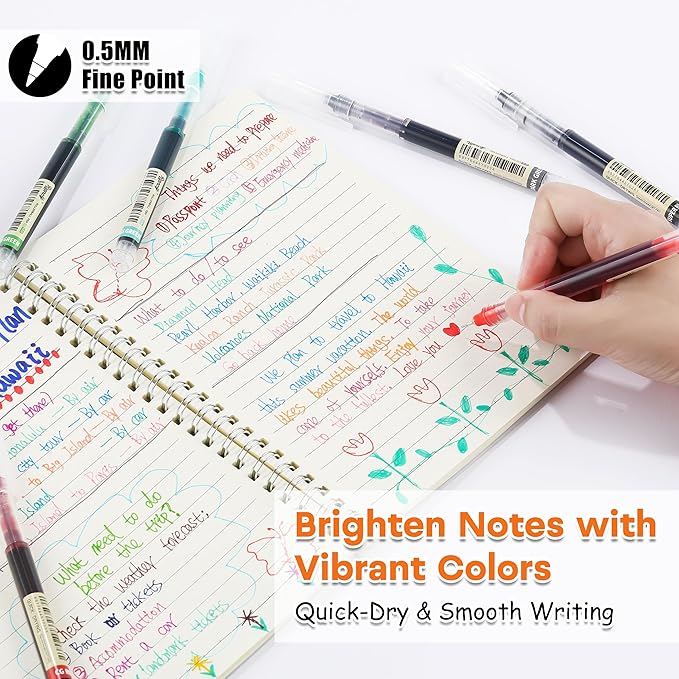 RIANCY Liquid Ink Rollerball Gel Pens, 0.5mm Extra Fine Point Tip, 24ct Assorted Colors, Smooth Writing No Smear No Bleed, Vibrant for Journaling, Drawing, Sketching, School Notes & Art Supplies