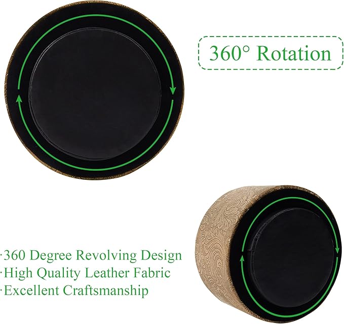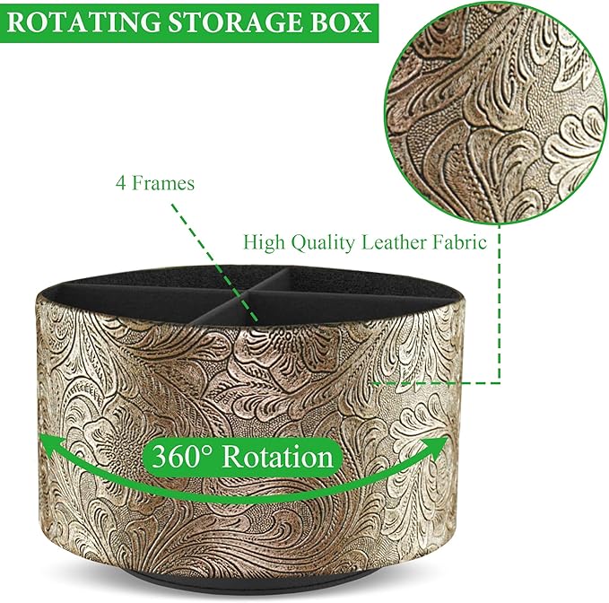 lizimandu Round Leather Art Supply Organizer,Remote Control Holder,360 Degree Spinning,Multi-Functional Pencil Holder,4 Compartments Desktop Stationary Organizer(1-Gold)