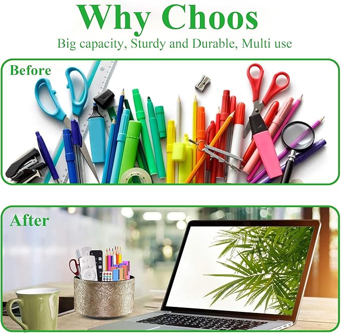 - ✎360° Revolving Design: You can freely rotate the pen holder steadily left and right,unique spinning base design allows easy access to items from any directions.The non-slip pads on the bottom keep it stay in place when rotating.