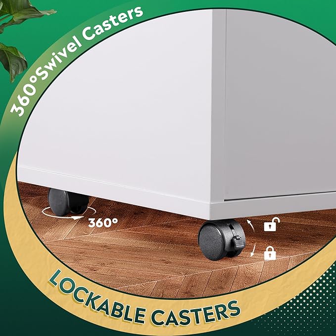 - DURABLE & STABLE STRUCTURE: Made of top-grade board for long-term use, the office file cabinet is scratch-resistant and water-resistant, and can support weights up to 150lbs. Rolling on 5 wheels (including 2 lockable casters), this wood filing cabinet can keep stable with the braking function or move freely according to your need.