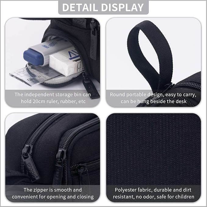 - Multifunctional: The pencil case is designed to store and organize pens, gel pens, pencils, rules, erasers, markers, scissors, protractors, calculators, compasses and other stationery items.