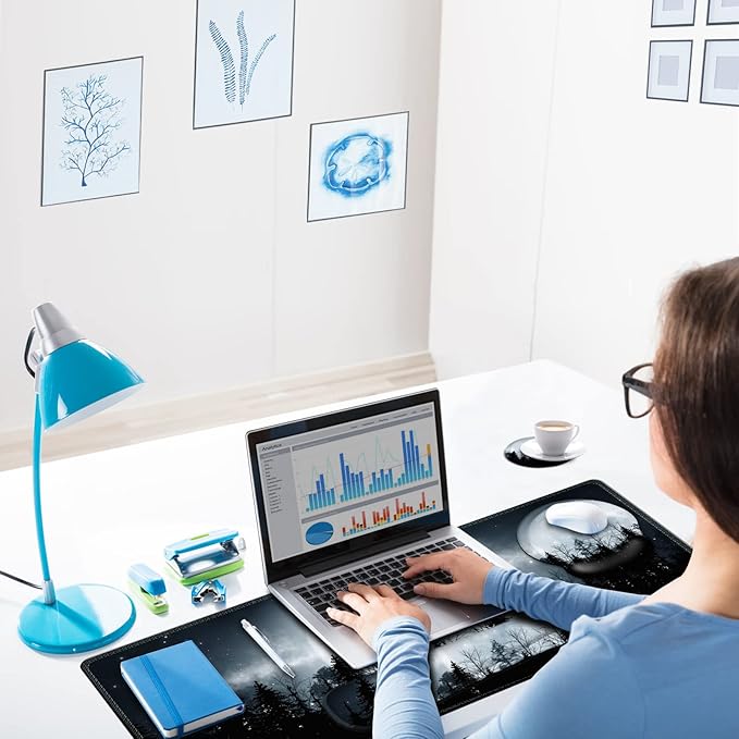 ARTSO Large Mouse Pad Ergonomic Keyboard Wrist Rest Support, Memory Foam Extended Desk Mat Protector, Non-Slip Desk Blotter for Office, Home, Night Moon Forest