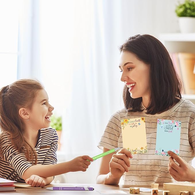 - Proper Size: each bible note pad measures approx. 3 x 4 inches, appropriate dimension and enough writing space, each style 30 sheets, portable and adorable, convenient for you to carry when working, daily using, traveling and more; At about 5.6 inches long, the christian ballpoint pen is easy to fit in a bag or backpack, ideal for your different purposes