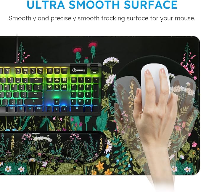 iCasso Large Mouse Pad, Mouse Pad Wrist Support Set,4in1 XXL Large Mousepad + Keyboard Wrist Rest+Mouse Wrist Rest+Coaster Set with Ergonomic Design for Home Office Table Computer-Weeds