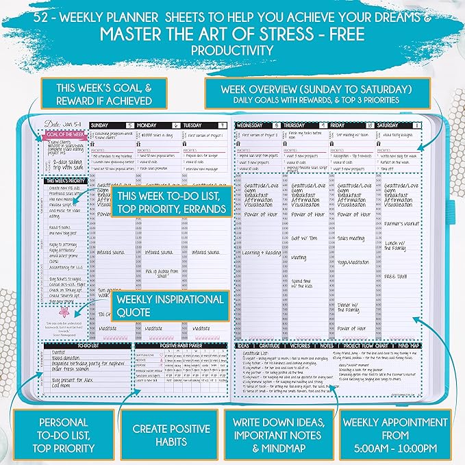 - INCREASE PRODUCTIVITY AND HAPPINESS - This is a deluxe life goal planner showing you how to become the best possible version of yourself on a mental, physical & interpersonal level using the law of attraction vibration guide. This 2024 planner is a daily planner, monthly planner, weekly planner, productivity planner, goal planner, business planner, to do list planner, planner notebook & gratitude journal all-in-one.